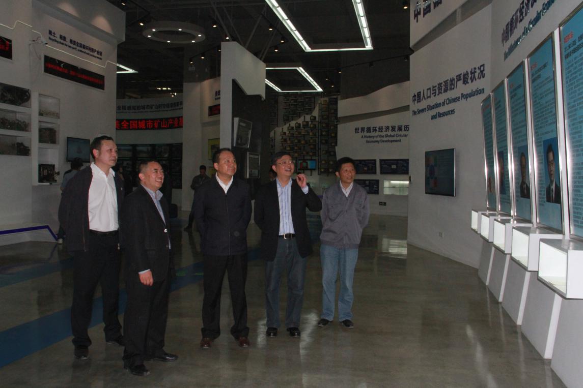 圖三 許開(kāi)華董事長(zhǎng)(左二)陪同萬(wàn)勇書(shū)記(左三)參觀(guān)循環(huán)經(jīng)濟(jì)博物館